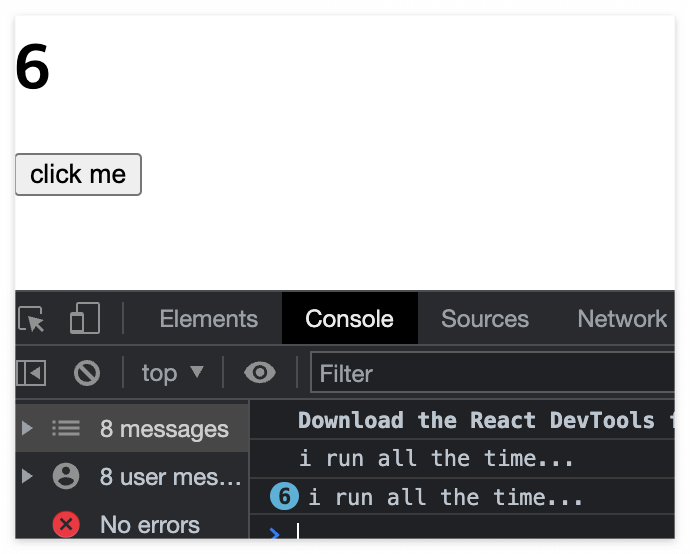 버튼을 Click할 때마다 컴포너트가 Re-Rendering되어 console.log가 계속 찍히게 된다.